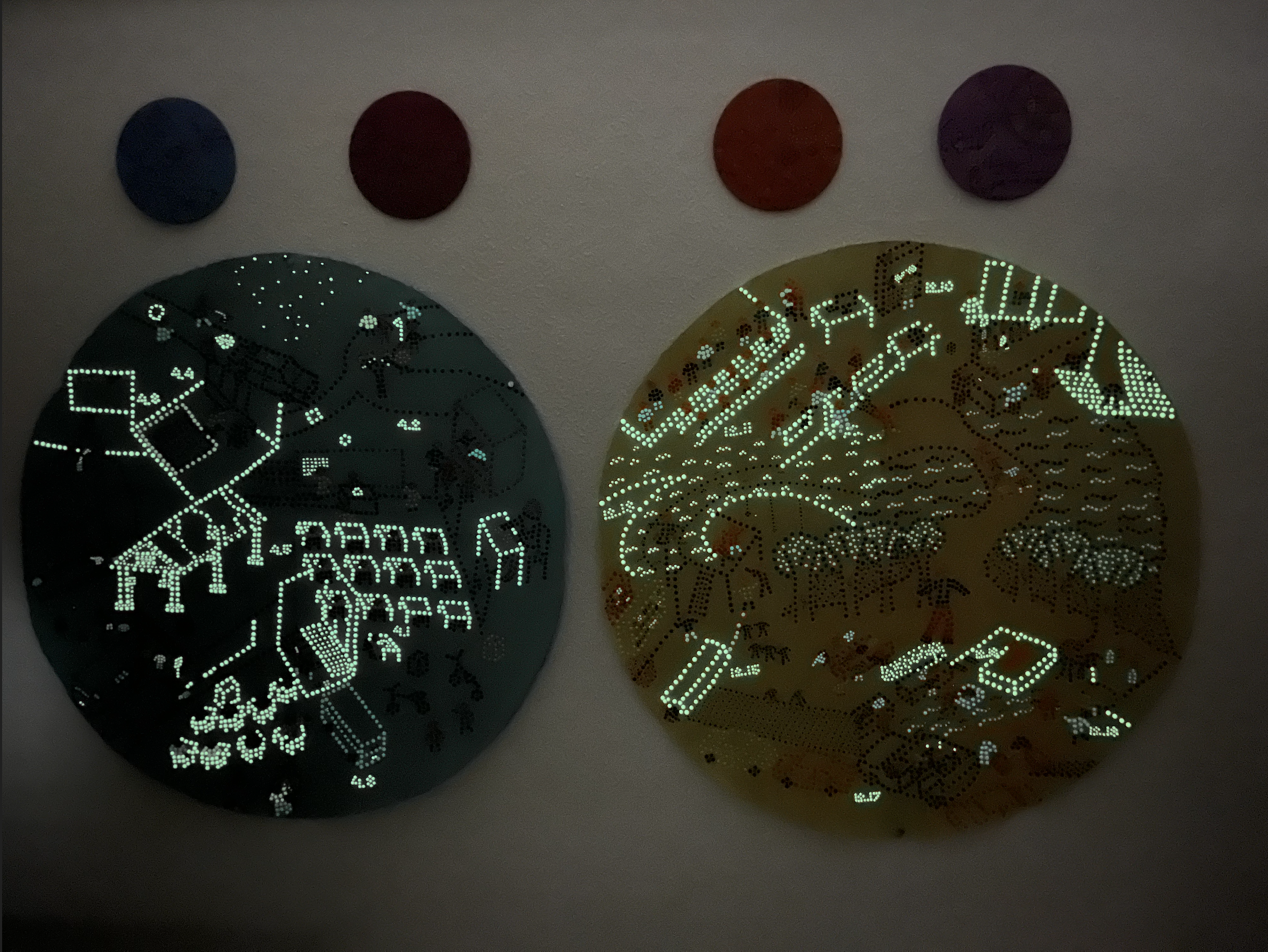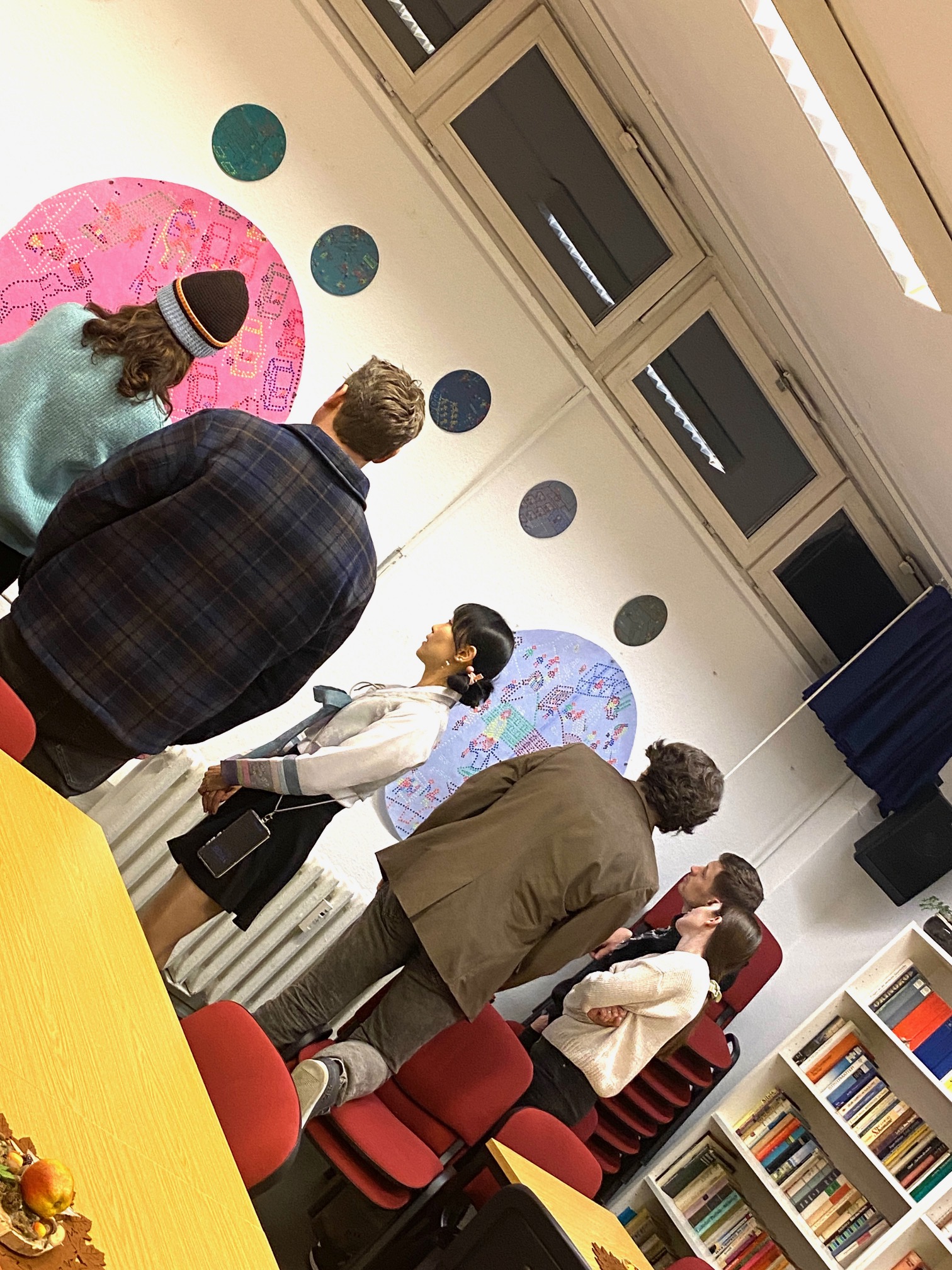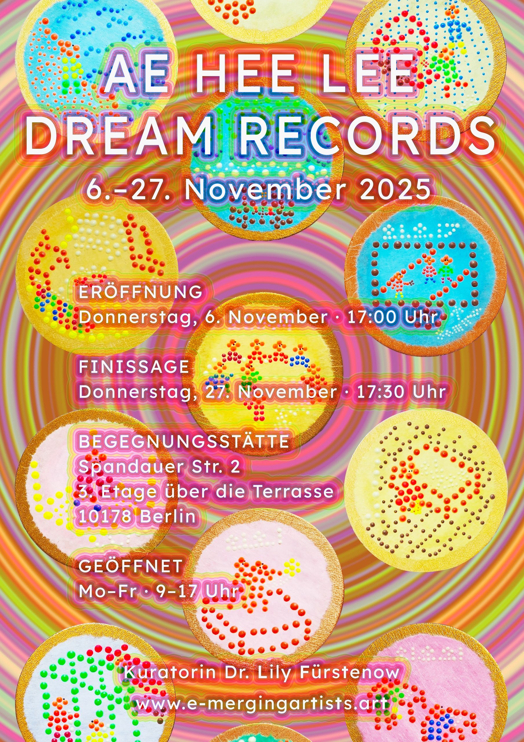 Ae Hee Lee. Dream Records. The artist’s recent pieces for the exhibition at Begegnungszentrum Berlin-Mitte explore brain activity during sleep. Mostly recordings of her own visions these are dreamscapes made visible. Composed of neon pigments that come alive in the dark, they remind us that not everything seen by day remains the same by night. It’s all there: from daydreams to nightmares. Visits by appointment or during the opening hours. Art in Public Spaces is a project curated by Lily Fürstenow and experiments with showing art in a range of unconventional contexts