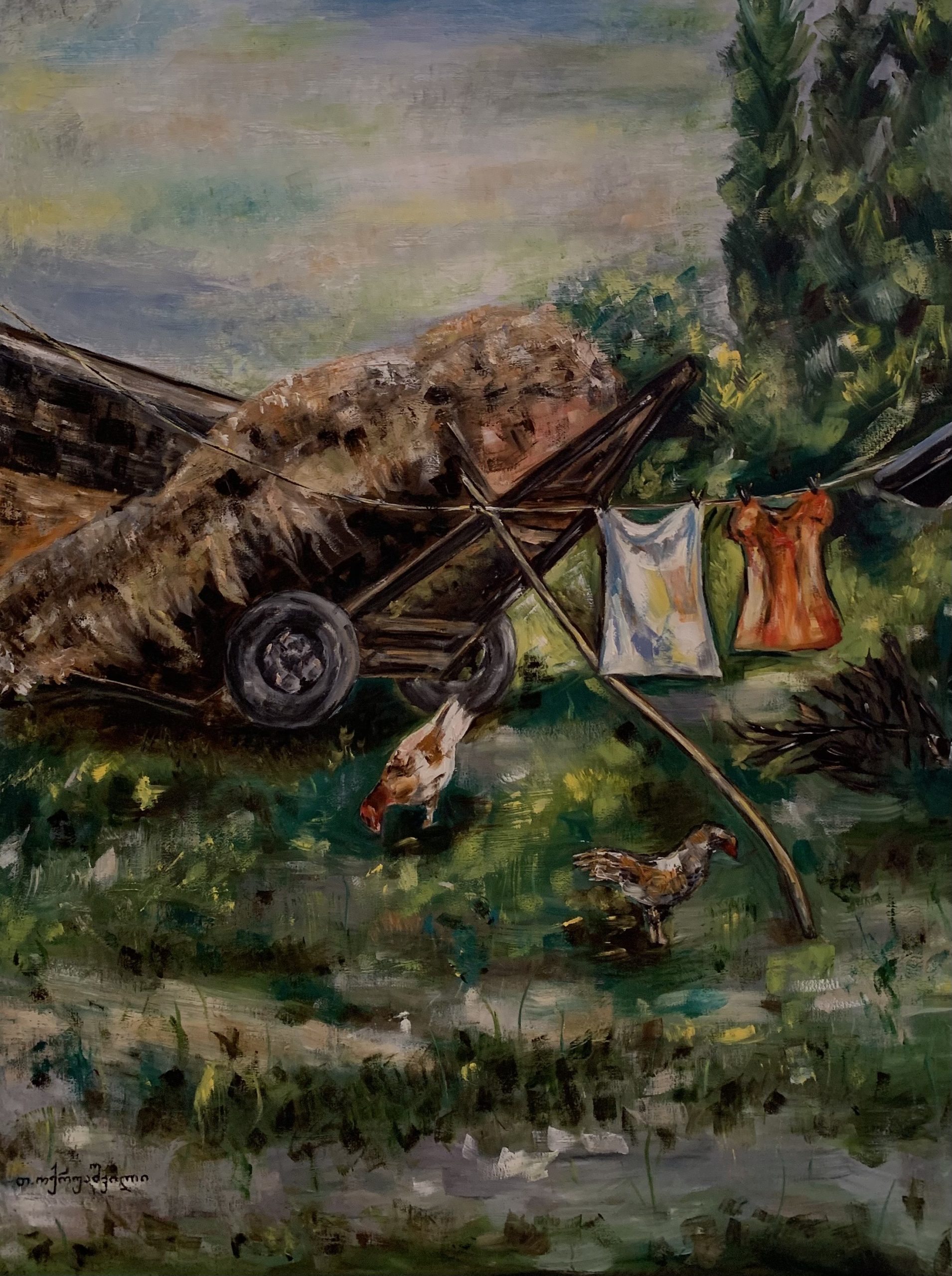 ამ ნახატით მინდოდაა მეჩვენებინა ჩემი სიყვარული სოფლისადმი. აღვბეჭდე ყოველდღიური ცხოვრება.